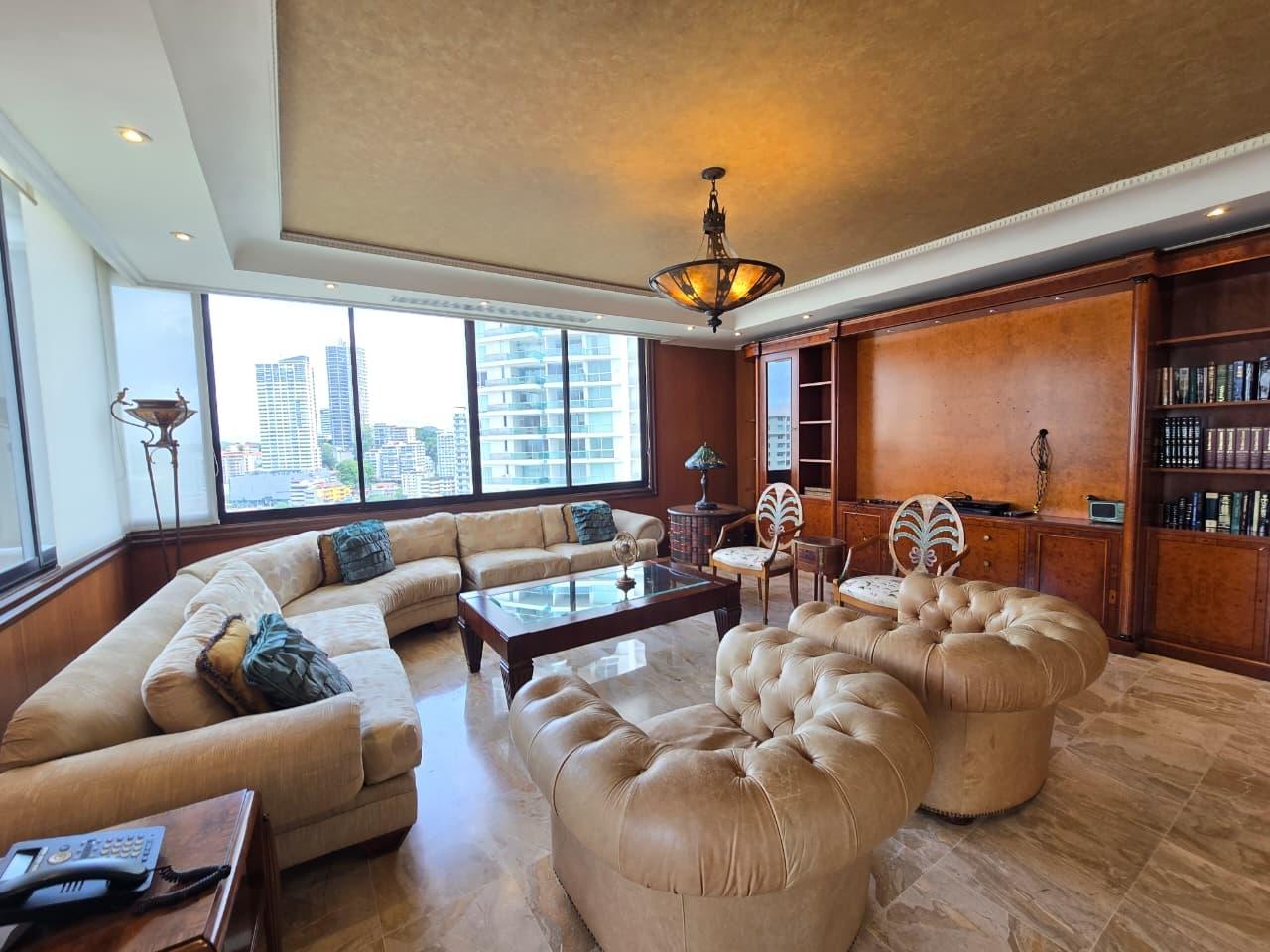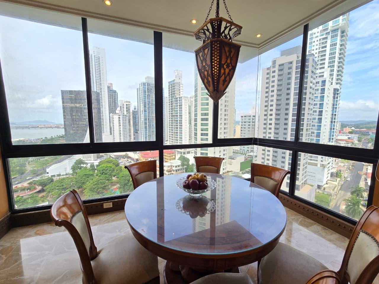 ¡Oportunidad única en piso alto – PH Pacific Park, Bella Vista! Viva el lujo frente al Parque Urraca, y a pocos pasos de la cinta costera. Apartamento de 561m², cuenta con 4 recamaras, 4.5 baños, amplia sala, amplio comedor con desayunador, estudio, cocina con desayunador, área de lavandería, cuarto y baño de servicio, 4 estacionamientos y un depósito. Este apartamento es una verdadera joya en el mercado inmobiliario de Panamá. Con su ubicación privilegiada, rodeado de parques, áreas recreativas, restaurantes y centros de negocioses lo hace una gran oportunidad que no puedes dejar pasar!! Contáctenos hoy mismo para más información o para agendar una visita! (ID 13349)