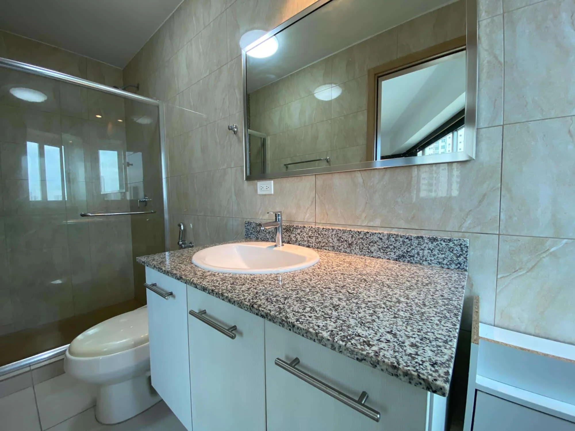 – 87 m2 – 2 recámaras – Recámara principal con baño privado – 1 baño completo secundario – linda vista a la ciudad y mar por todas las ventanas – Piso Alto – conveniente closet de lenceria – Closets lineales con cerradura en habitaciones – Abanicos de techo – Cocina abierta con linea blanca – Área de lavanderia abiertacon centro de lavado – 2 parking techadosy Depósito Grande – Aires acondicionados tipo split inverter – Cortinas rollers