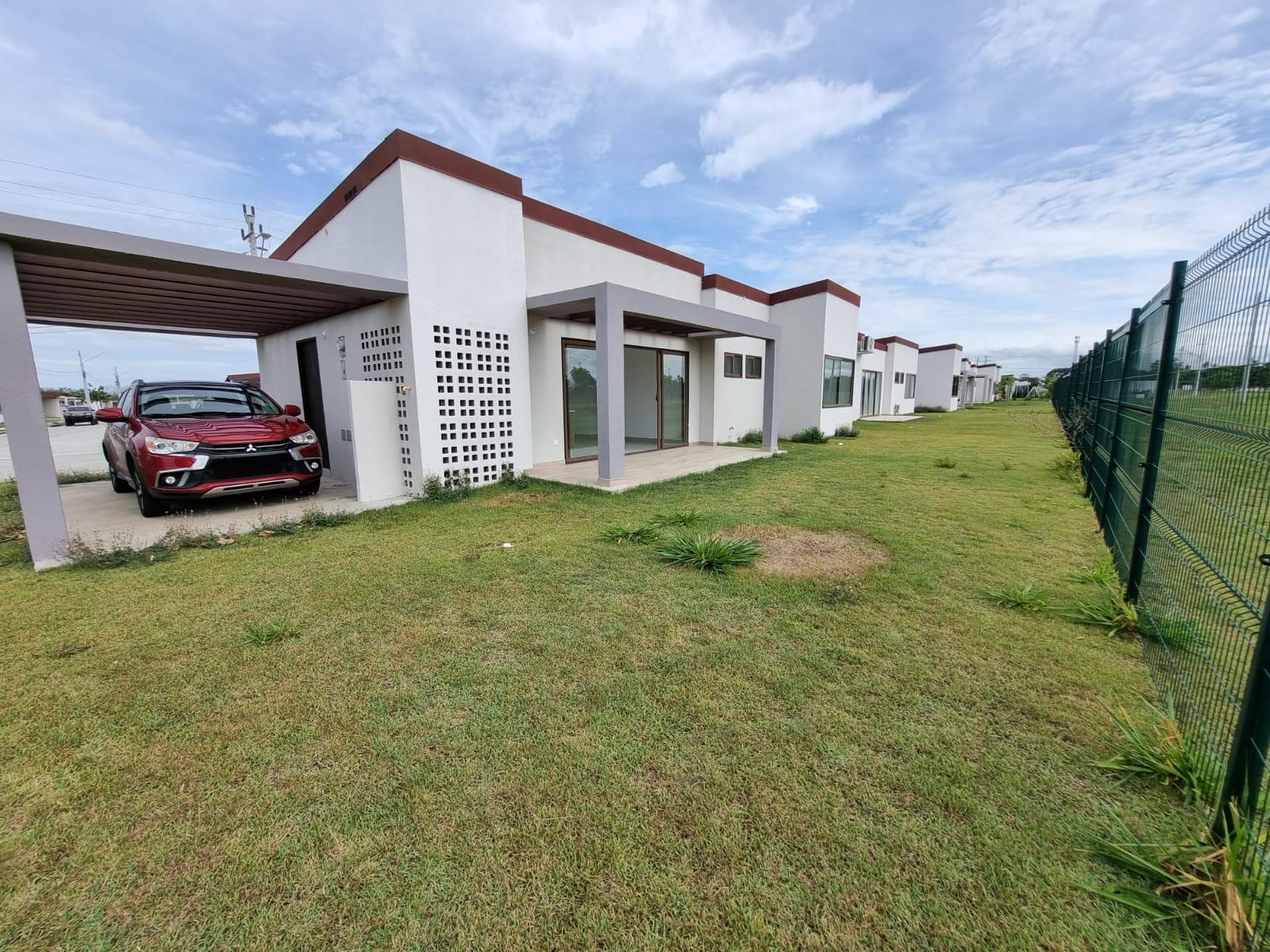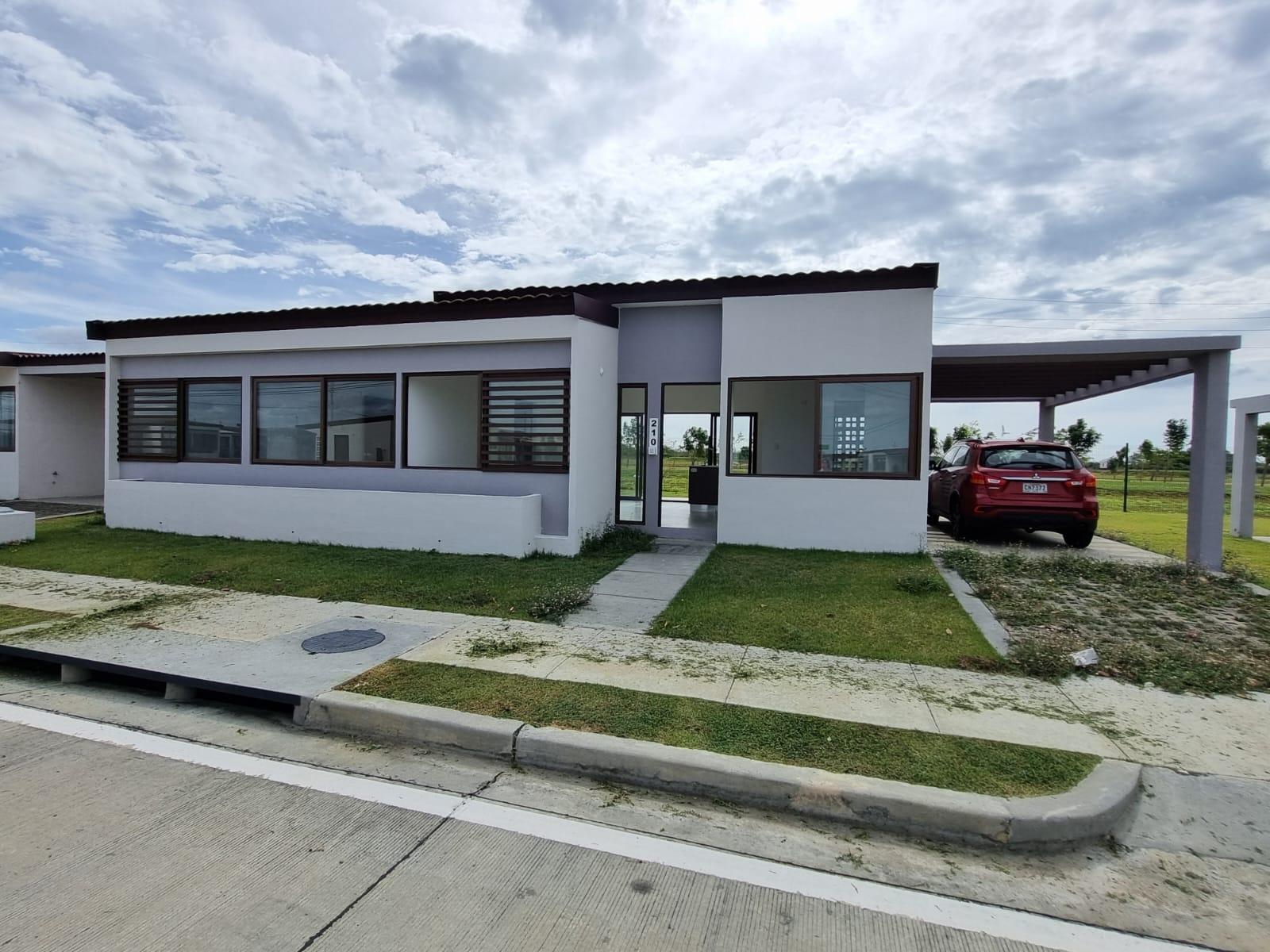 Acogedora residencia unifamiliar para estrenar. Cuenta con 150m2 de construcción, sala y comedor, cocina concepto abierto, 3 habitaciones la principal con baño privado y walking closet, dos habitaciones secundarias y un baño compartido. Terraza, dos puestos de estacionamiento. El complejo residencial cuenta con garita de acceso, vigilancia 24/7, parques infantiles, senderos para caminar, gimnasio al aire libre, canchas multi usos. Dentro del complejo hay colegio bilingue privado.