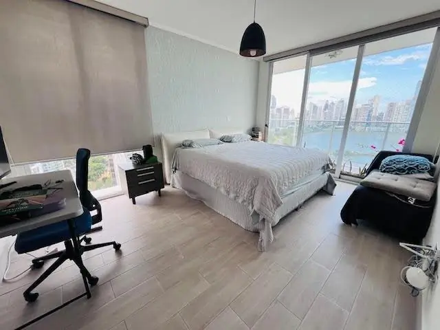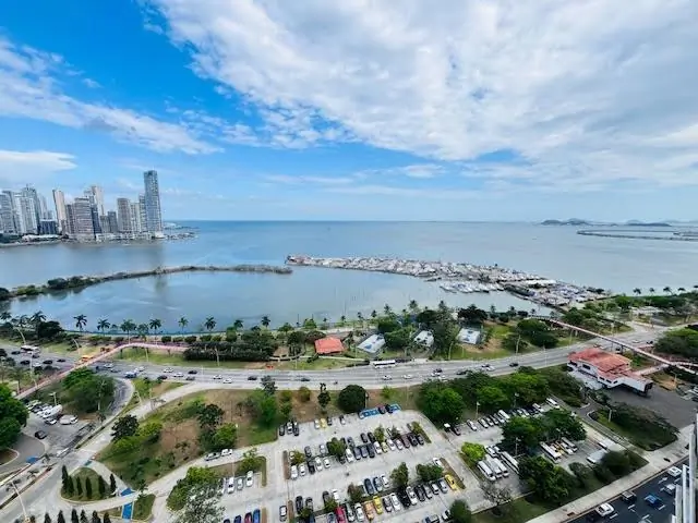 Se alquila apartamento finamente amoblado frente a la bahía. El apto de 169 mts. tiene 3 recámaras, 3 baños, sala-comedor, cocina con lavaplatos, área de lavandería, balcón, 2 estacionamientos y deposito. El edificio tiene seguridad, conserje, área social completa con piscina, jacuzzi, salón de fiesta, cto de juego para niños, cancha de tenis y cancha multiuso. El edificio se encuentra cerca del Parque Urraca y tiene cerca Bancos, Farmacias y Supermercados. Se puede mostrar los lunes, miércoles y viernes en la mañana; los jueves en la tarde y los sábado. Todas las visitas deben ser programadas con anticipación. Visítelo sin compromiso.