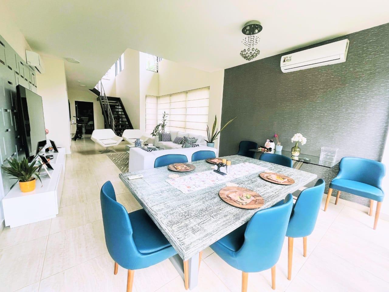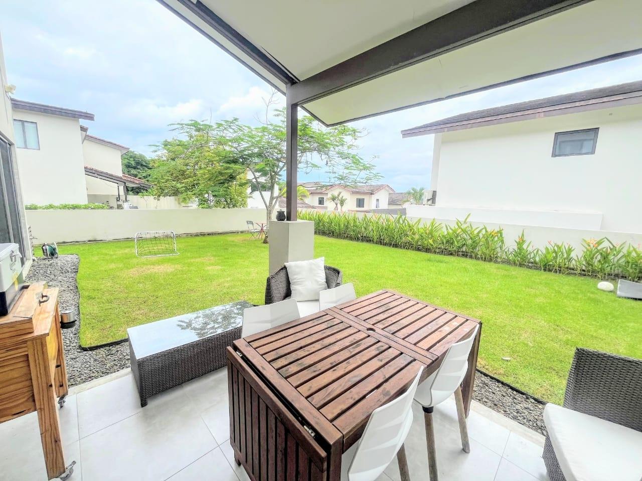 PH Nativa de Panamá Pacífico, es el epítome de la elegancia y la comodidad. Con una construcción de 304 m2 y un terreno de 402 m2, esta propiedad de dos niveles ofrece amplios espacios para vivir y disfrutar. La casa cuenta con: – 3 recámaras amplias y luminosas – 3.5 baños, incluyendo un baño de servicio – 2 estacionamientos – Piso de porcelanato de alta calidad – 2 balcones con vistas impresionantes – Cocina equipada con línea blanca – Comedor y sala familiar para disfrutar con la familia y amigos – Estudio para trabajar o estudiar en tranquilidad – Cuarto y baño de servicio para mayor comodidad – 6 aires acondicionados split para mantener un ambiente fresco y agradable en todo momento La propiedad fue construida en 2016, lo que garantiza la calidad y la modernidad de sus acabados. Además, la cuota de mantenimiento de $400 incluye administración, mantenimiento de áreas comunes y seguridad, lo que te permite disfrutar de la vida en comunidad sin preocupaciones. Nativa, Panamá Pacífico es un área privilegiada que ofrece todo lo que necesitas para vivir una vida de lujo. Con sus áreas verdes, parques y servicios de alta calidad, esta zona es ideal para aquellos que buscan una vida tranquila y segura. No pierdas la oportunidad de vivir en una de las áreas más exclusivas de Panamá. ¡Esta casa es perfecta para ti!” Precio: $574,500