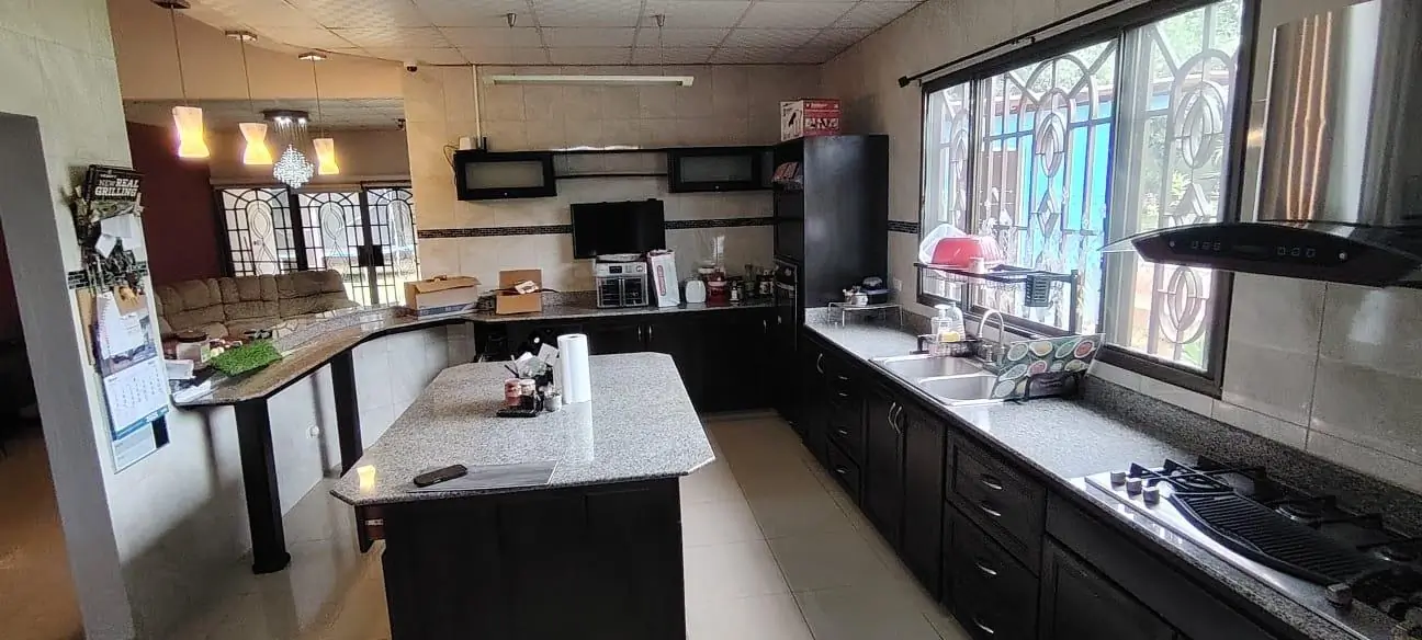 Se Vende casa Moderna en Arraiján REMODELADA 750 M2 de terreno 1. 3 recamara se dejan los aires acondicionados. 2. 1 estudio que puede ser otra recamara 3. 3 baños 4. 2 deposito 5. Estacionamiento para 3 vehículos 6. Sala comedor 7. Cocina con sobre de granito y muebles de caoba, se dejan la estufa, campana y horno 8. Se deja con paneles solares instalada. 9. Cuarto de lavandería techado 10. Cuarto y baño de empleada 11. Se deja Portón eléctrico con acceso al celular 12. Se deja sistemas de cámara en toda la casa 13. Se deja sistema de 2 tanques de reserva de agua potable y estación de bombeo 14. Terreno para futuras mejoras. *precio muy, muy por debajo del avaluó