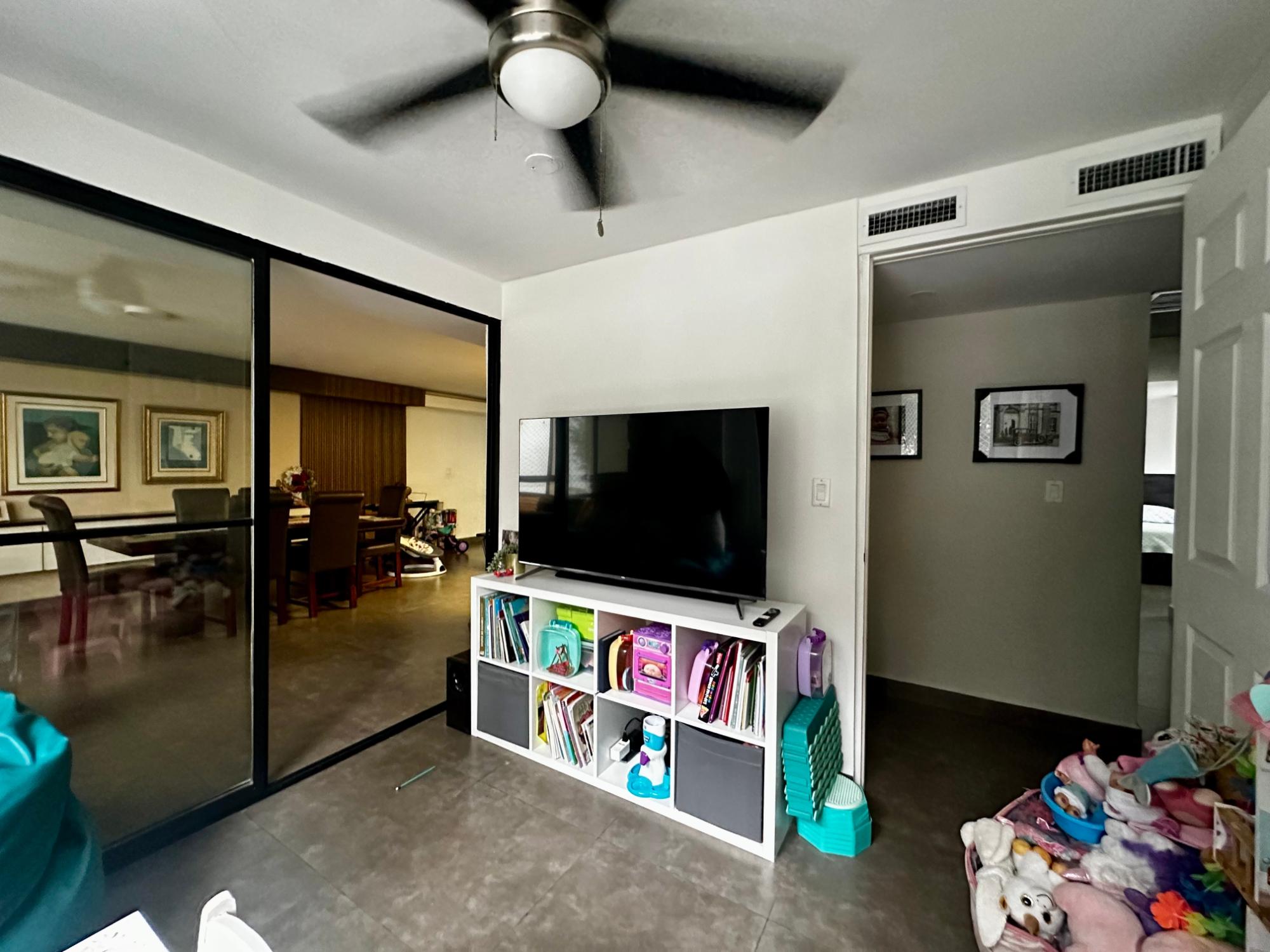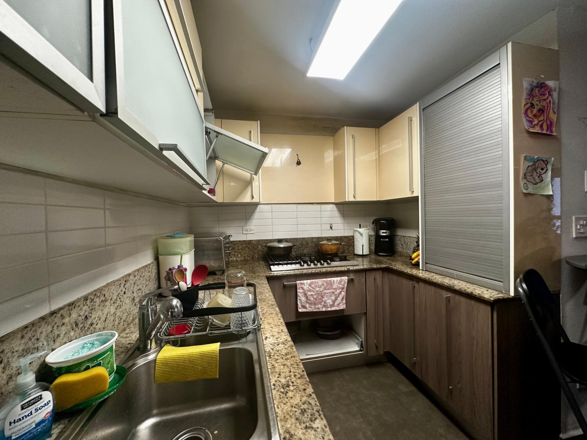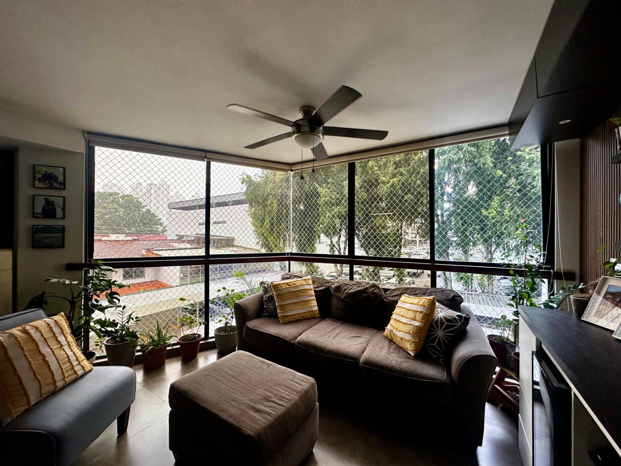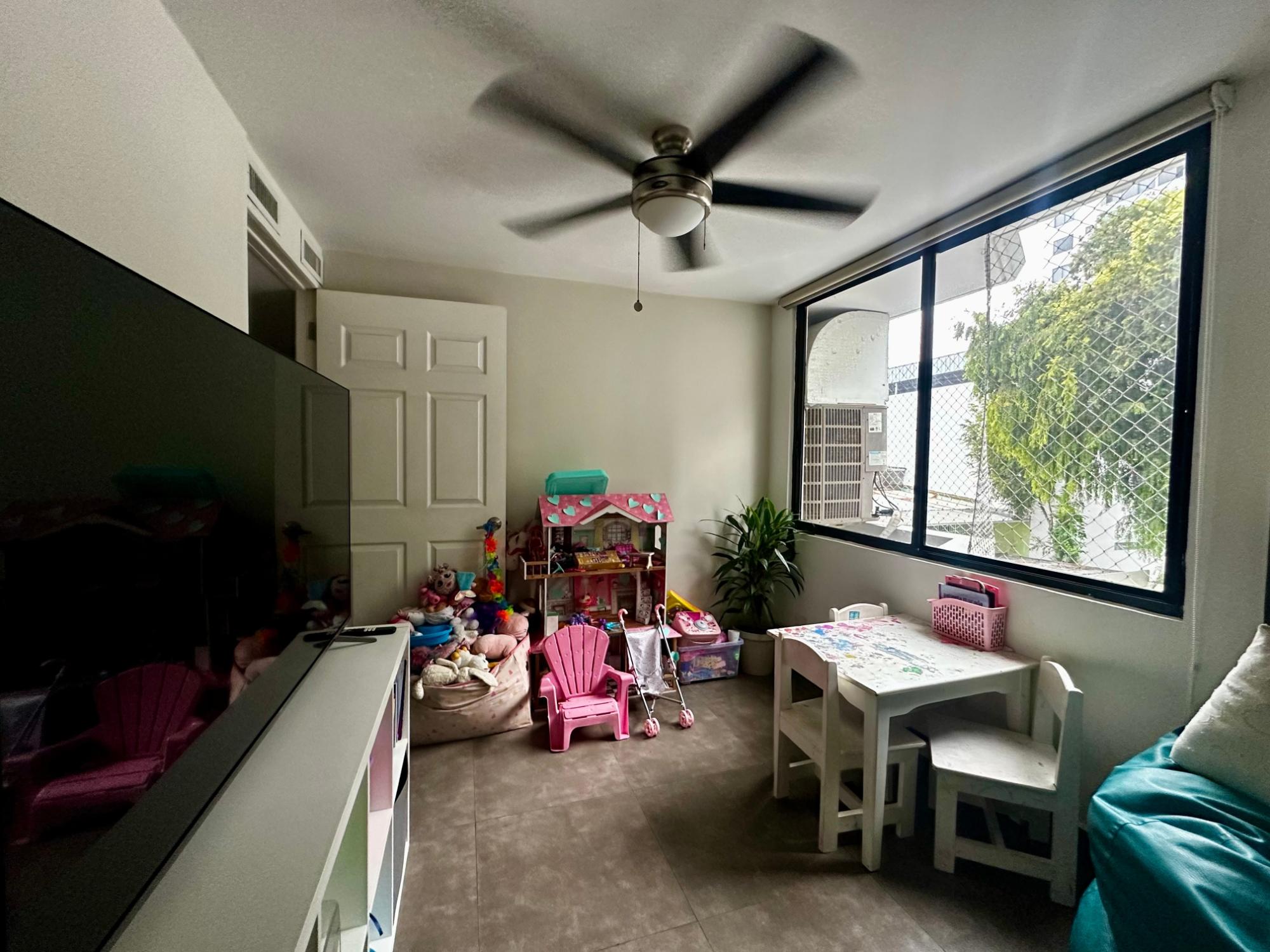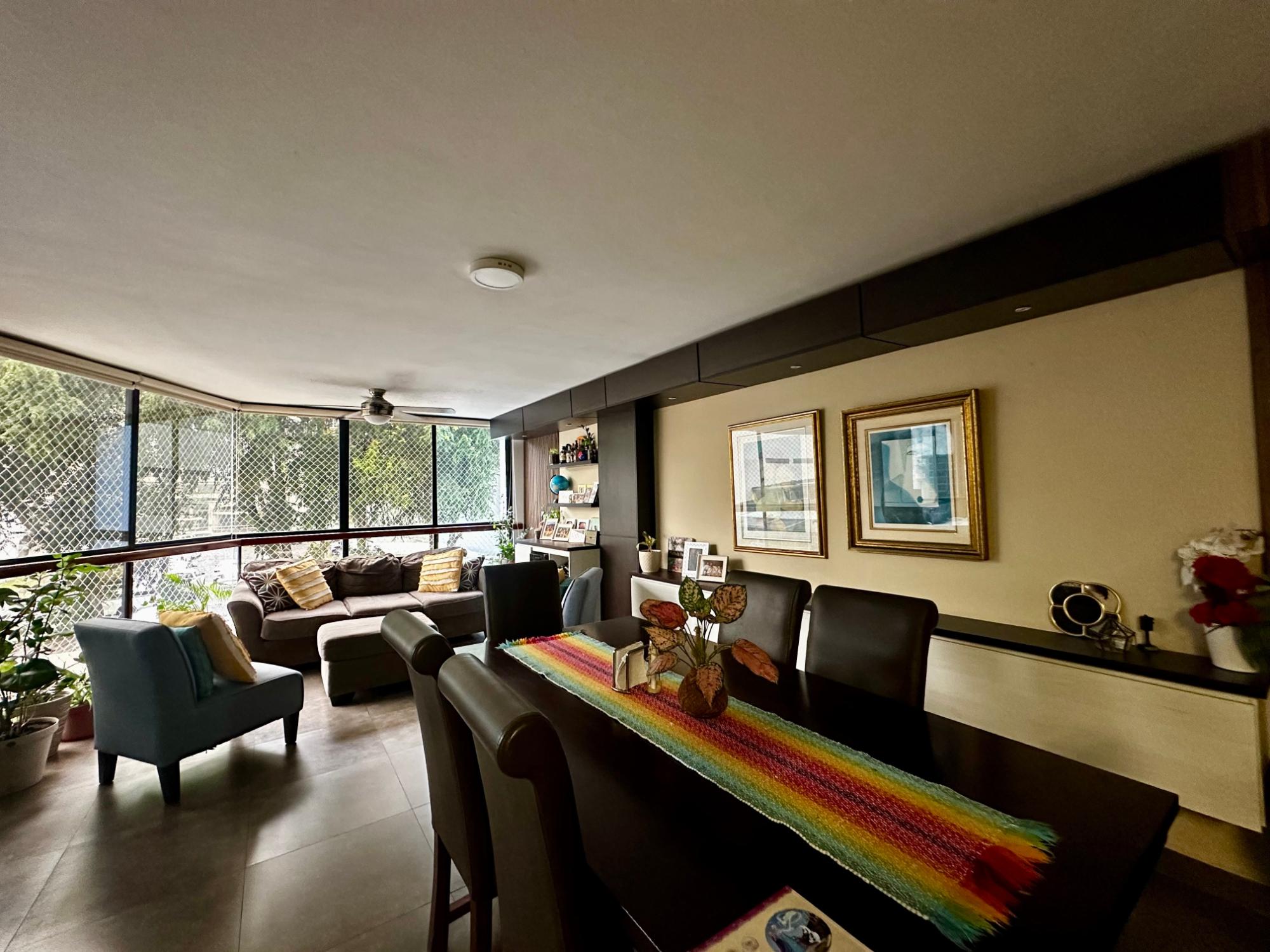 Apartamento de 3 recámaras, área de den o estudio, cocina abierta, cuarto y baño de servicio. Recámara principal con baño y closet, las dos recámaras comparten un baño. Un estacionamiento techado.