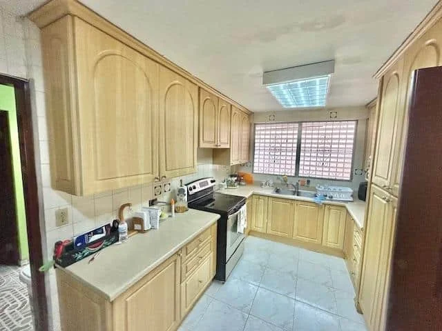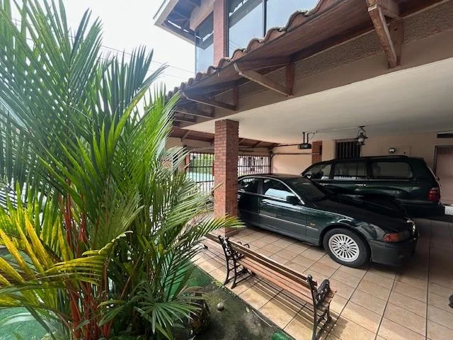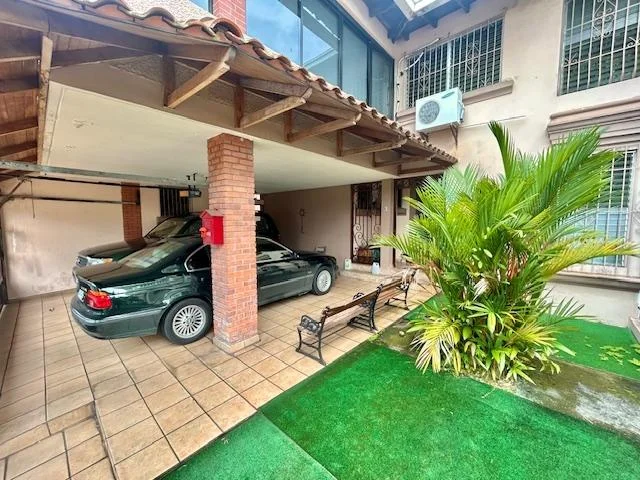 Casa en calle tranquila cerca a colegios con 368.28 m2 de construccion y 297.68m2 de terreno con 4 recamaras, 2.5 baños, 2 estacionamientos, cuarto y baño de servicio, deposito, terraza techada, bbq de ladrillo, fuente, den, puerta electrica de estacionamientos tanque reserva de agua de 500 galones, linea blanca