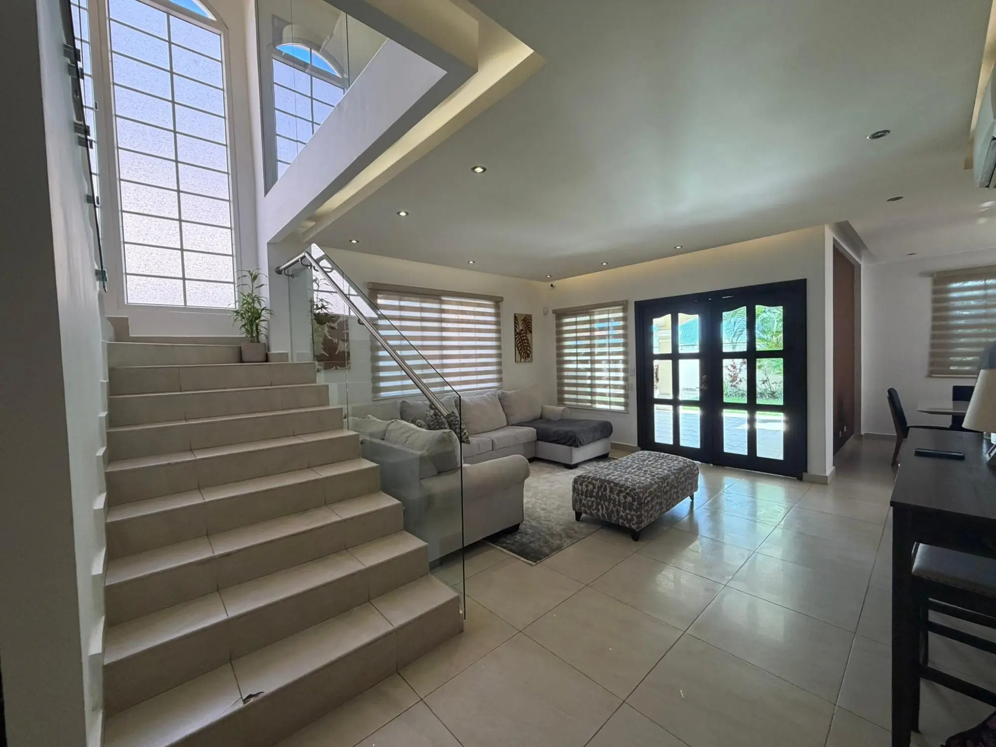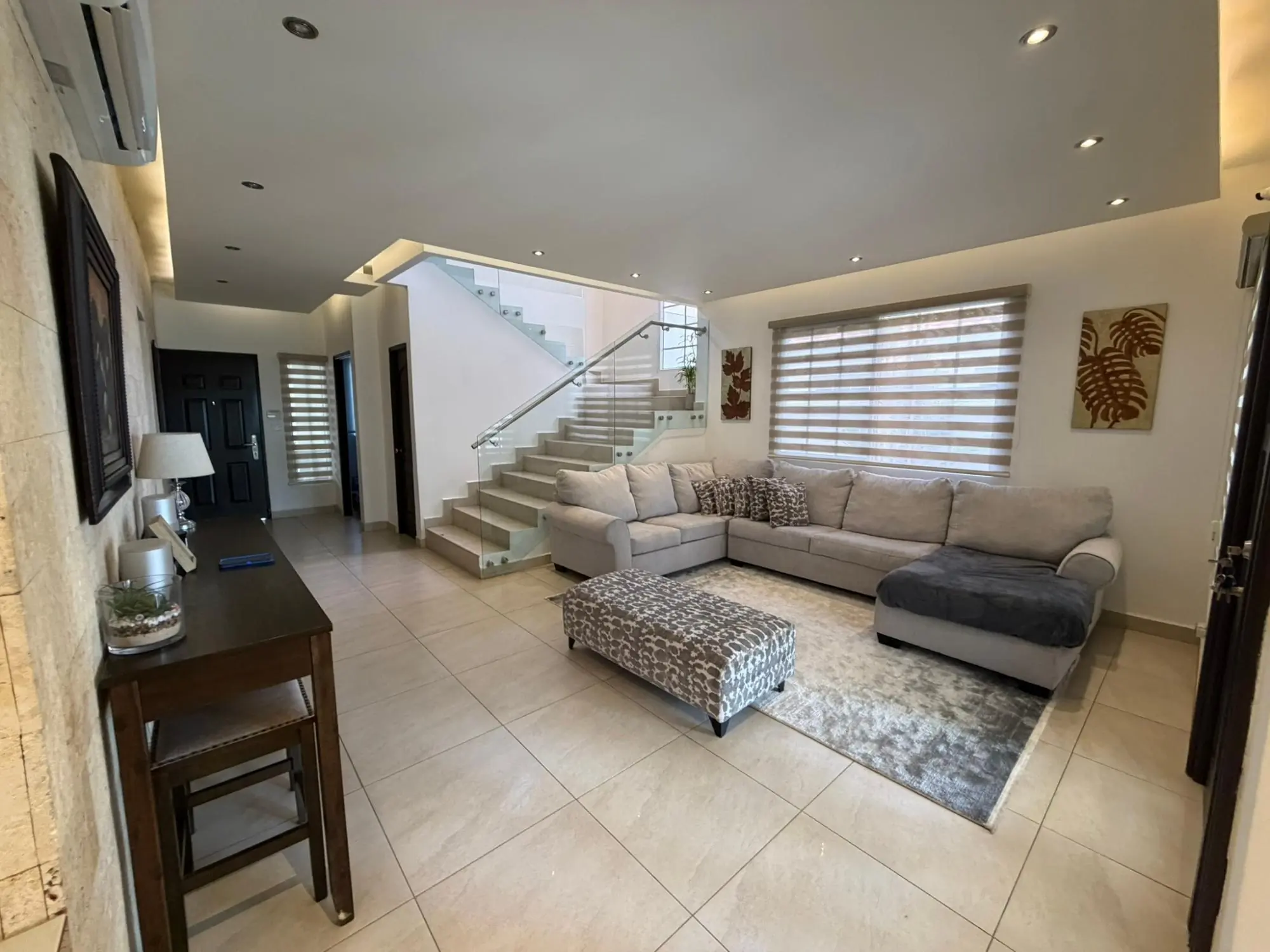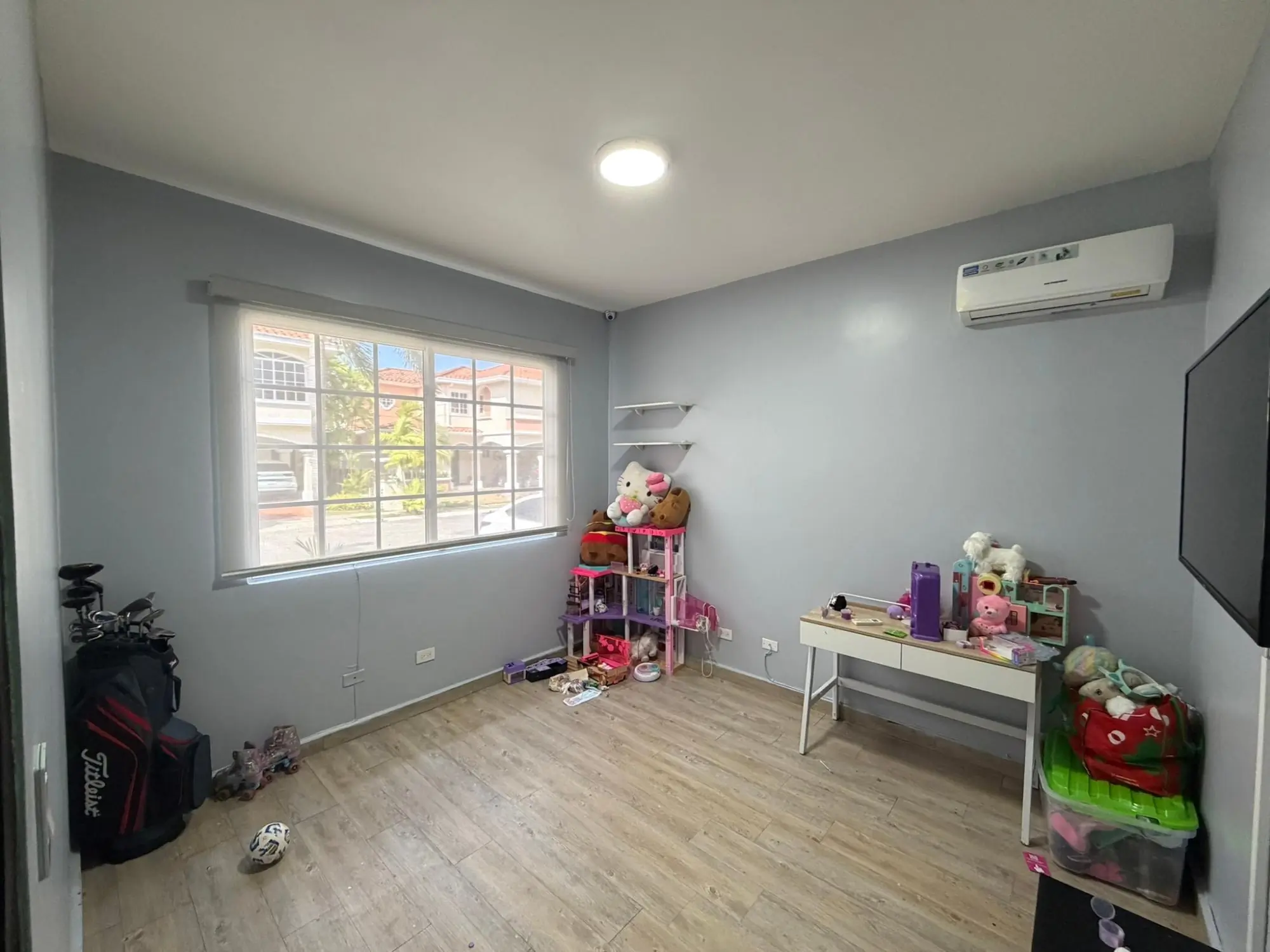 468.72 m2 de terreno, 401.17 m2 de construcción, 2 estacionamientos, 4 recámaras, 4.5 baños, habitación de servicio con su baño, área de lavandería, den, sala de TV, desayunador, cuarto de tanque de agua, casa anexa en el jardín donde actualmente tienen un gimnasio privado, área de BBQ, jardín interno. Área social con piscina, gym, BBQ, seguridad 24/7, costo de mantenimiento $ 200 (cubre seguridad, mantenimiento de áreas comunes, jardinería, fumigación). a 5 minutos del corredor Sur, a 10 minutos del centro financiero de la ciudad, a 10 minutos del aeropuerto Tocumen. A 5 minutos de centros comerciales, farmacias, colegios, super mercados y mucho más