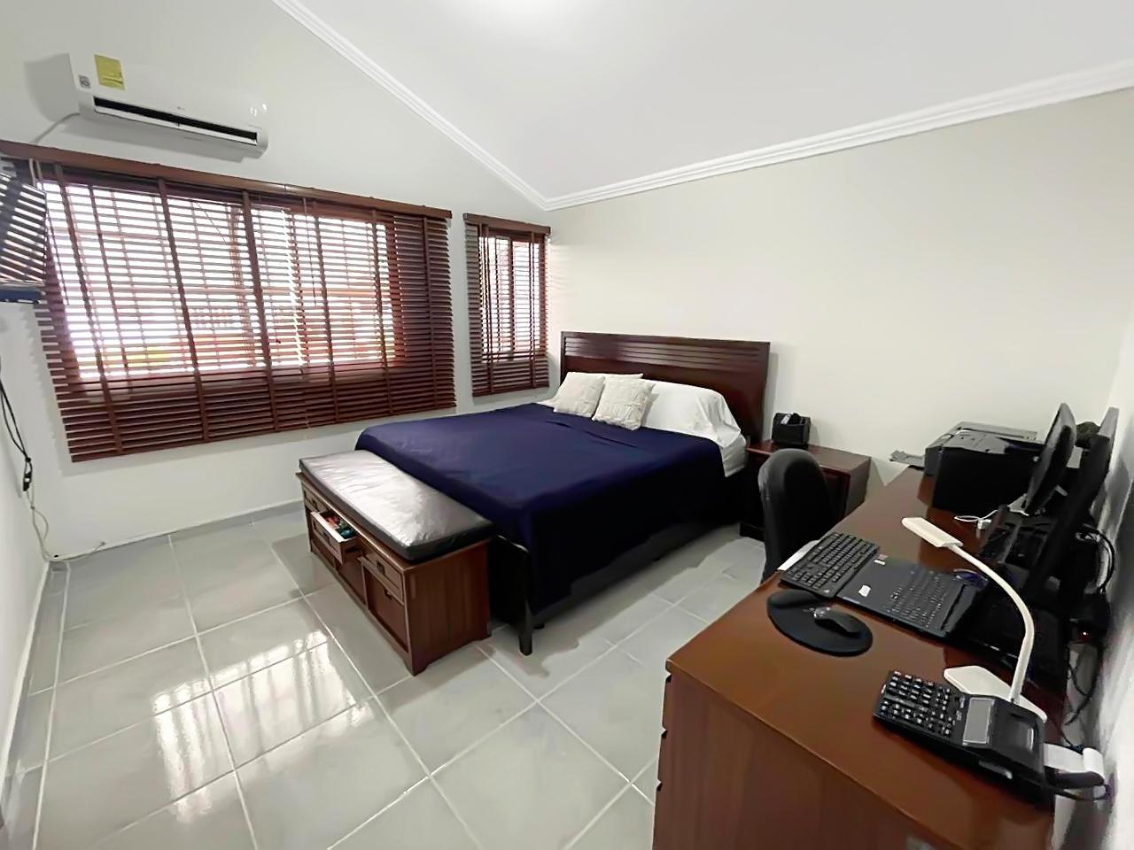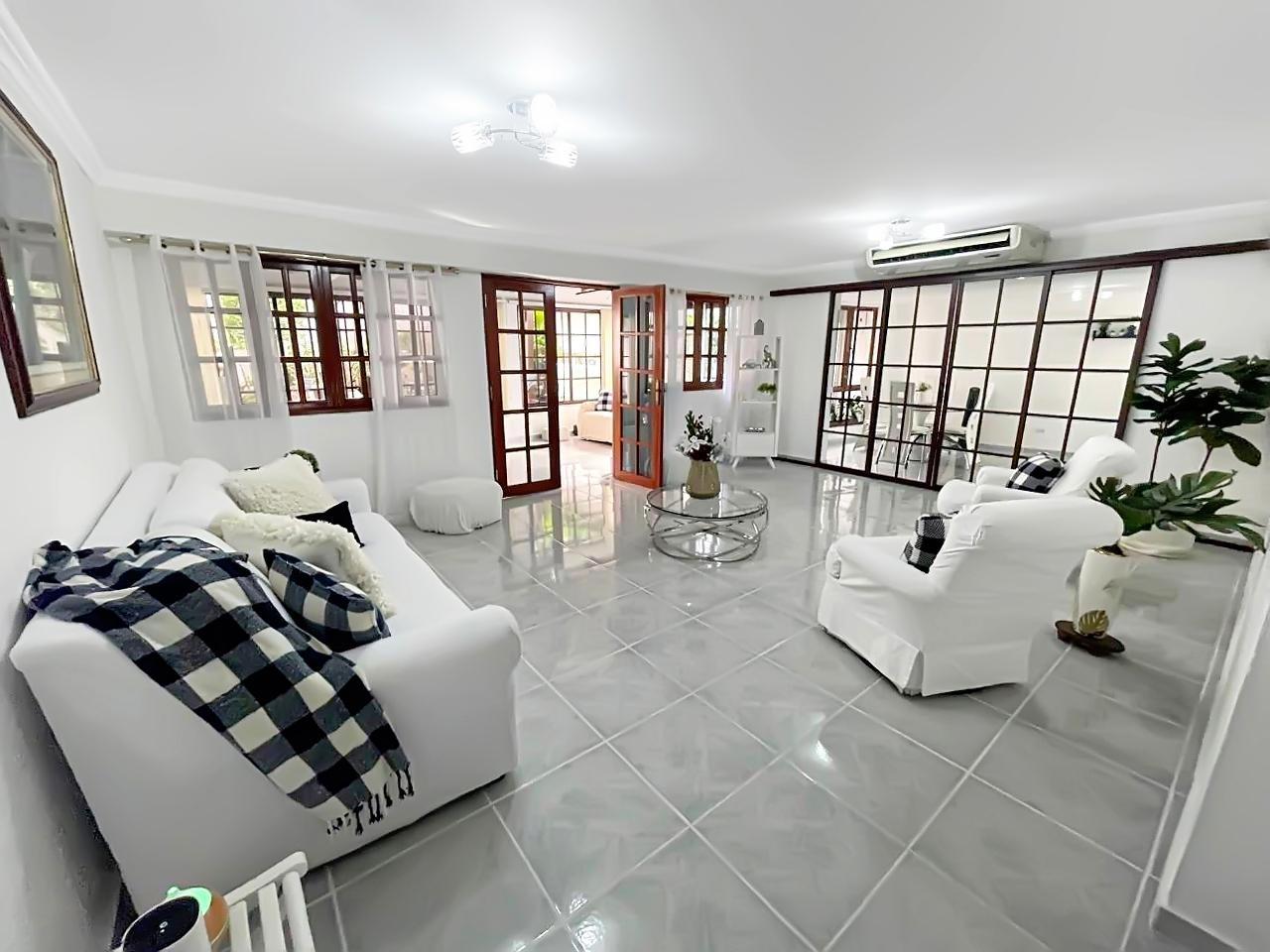 Hermosa e impecable casa en esquina cuenta con estacionamiento, Portal, Terraza, Lavandería, Depósito y Patio Posterior: -El estacionamiento cuenta con capacidad para tres(3) automóviles y mantiene al igual que el portal, piso adoquines junto a techo de losa de hormigón con repello liso, presenta dos portones eléctricos de láminas de metal enrollables. -La terraza presenta piso de baldosas, junto a cielo raso de madera machihembrada y techo de tejas sobre estructura metálica. -La lavandería cuenta con piso de adoquines junto a cielo raso de losa de hormigón con repello liso. -El depósito posee piso de concreto a llana cubierto de caucho, junto a techo de losa de hormigón con repello liso. -El patio posterior y la lavandería presentan adoquines, una porción de arcilla y grama sintética en el patio frontal. Cuenta además con muro de bloques en su perímetro. Cuatro recamaras Tres Baños Cuarto y baño de servicio.