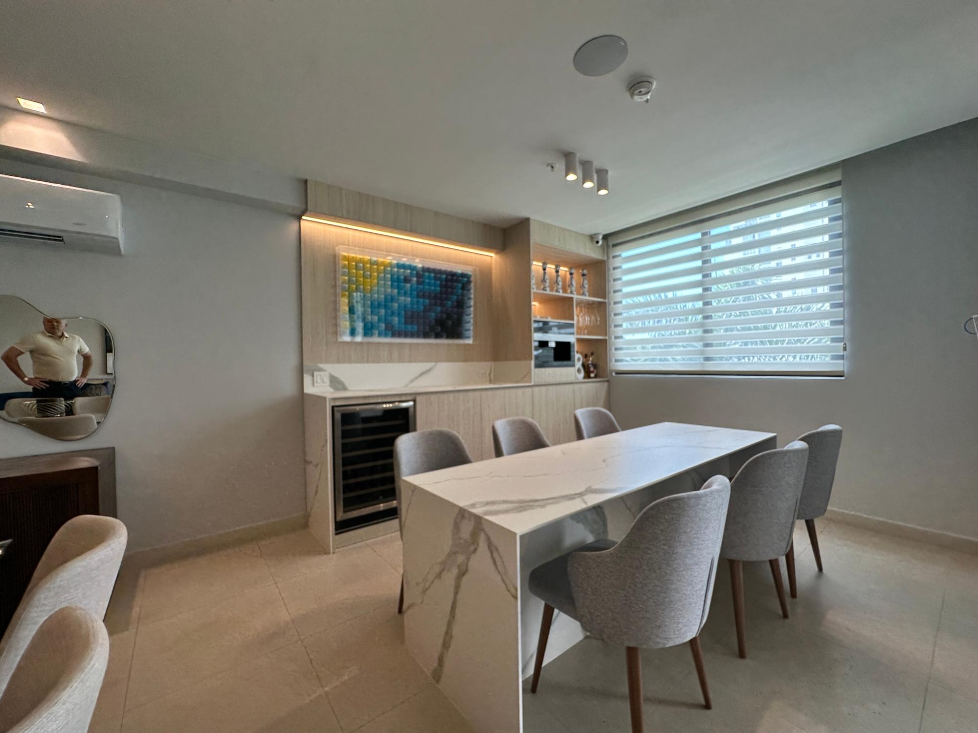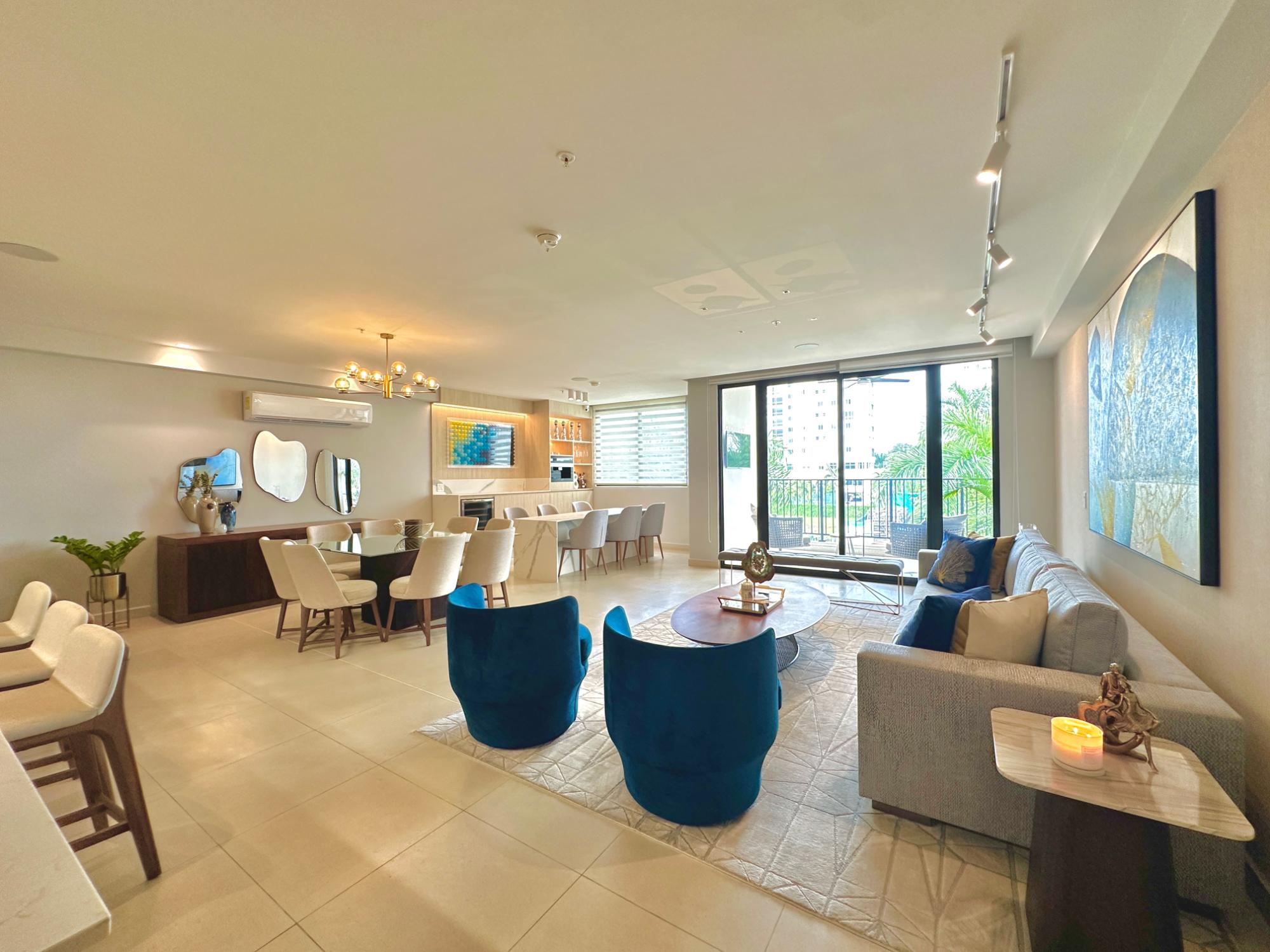 Amplio y elegante apartamento de 226 m² ubicado en exclusivo complejo residencial con área social completa. Distribución interna: • Recibidor • Sala comedor de gran tamaño • Área de bar con mesa empotrada • Cocina abierta con excelente iluminación • Balcón con acceso desde el área social • Recámara principal con baño privado, walk-in closet y balcón • 2 recámaras secundarias con baño propio y closet lineal • Cuarto y baño de servicio (CBE) • 3 estacionamientos El complejo ofrece: • Piscina para adultos y niños • Gimnasio • Salón de eventos • Cancha multiuso • Parque infantil • Seguridad 24/7 y planta eléctrica Espacios pensados para vivir con comodidad, privacidad y estilo.