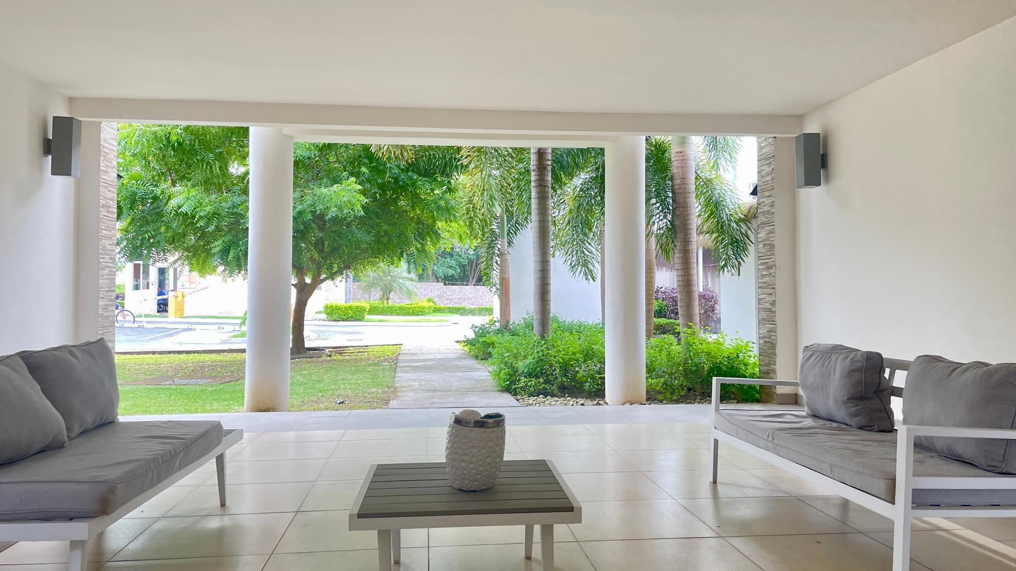 Venta y alquiler de acogedor apartamento en planta baja, ubicado en Coronado en el PH. Paraiso Village VIP. Cuenta con 2 recámaras, 1 baño, sala-comedor, desayunador, lavandería interna. Tiene garita de seguridad 24 horas. Cuenta con dos áreas sociales, ambas con piscina, bohíos y duchas.