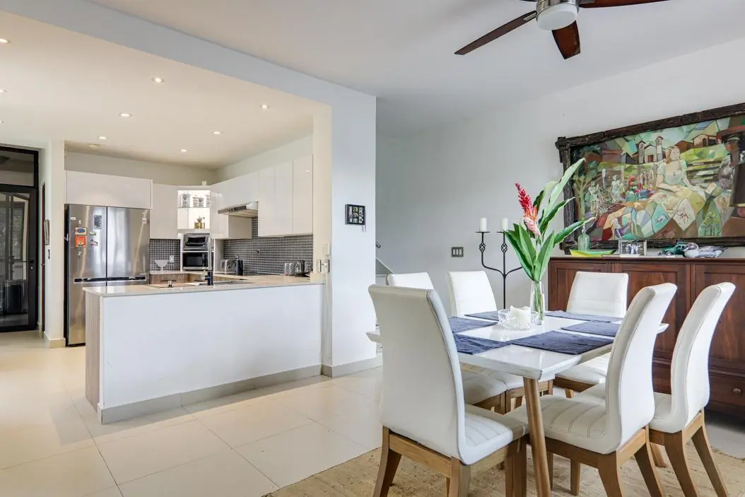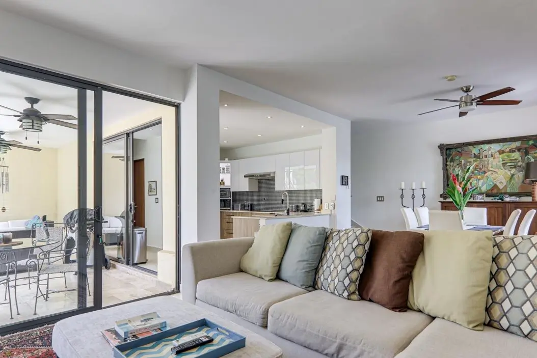 Disfruta lo mejor de ambos mundos—naturaleza a tu alrededor y la ciudad a pocos minutos—en esta casa de dos niveles modernizada, ubicada en el codiciado residencial River Valley en Panamá Pacífico. Ubicada en uno de los lotes más grandes del área, esta casa completamente independiente cuenta con jardín paisajístico, terraza con baldosas de travertino y estacionamiento para hasta cuatro vehículos. En el interior, el diseño de concepto abierto conecta la sala, el comedor y la cocina, con amplias puertas corredizas que se abren hacia el área exterior. La cocina, completamente nueva, equipada con sistema alemán BLUM, incluye gabinetes modernos, estufa de inducción y horno empotrado. Además, dispone de un área de servicio completa con lavandería, despensa y cuarto con baño para personal. En la planta alta, un den conecta las tres recámaras, incluyendo una amplia recámara principal con walk-in closet y baño privado. La casa se encuentra en excelente estado y es fácil de mantener, con servicios de jardinería y limpieza a bajo costo.